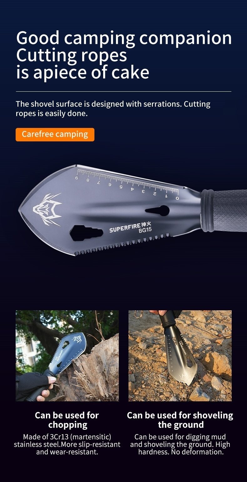 Package Contents Folding shovel, Hand strap, Nylon bag, Box