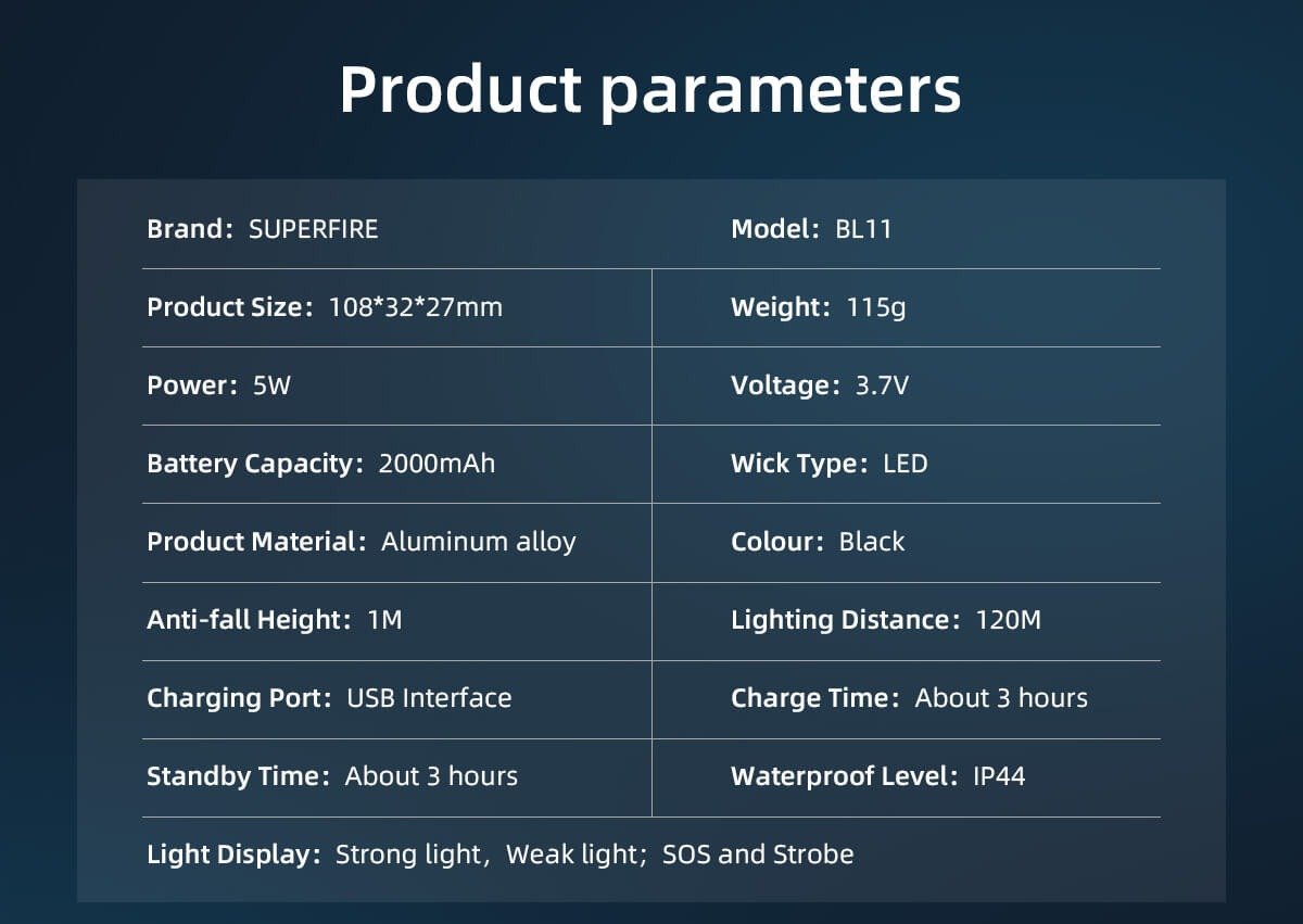 Modes 4mode(high light -low light),long press2’s(SOS-strobe)