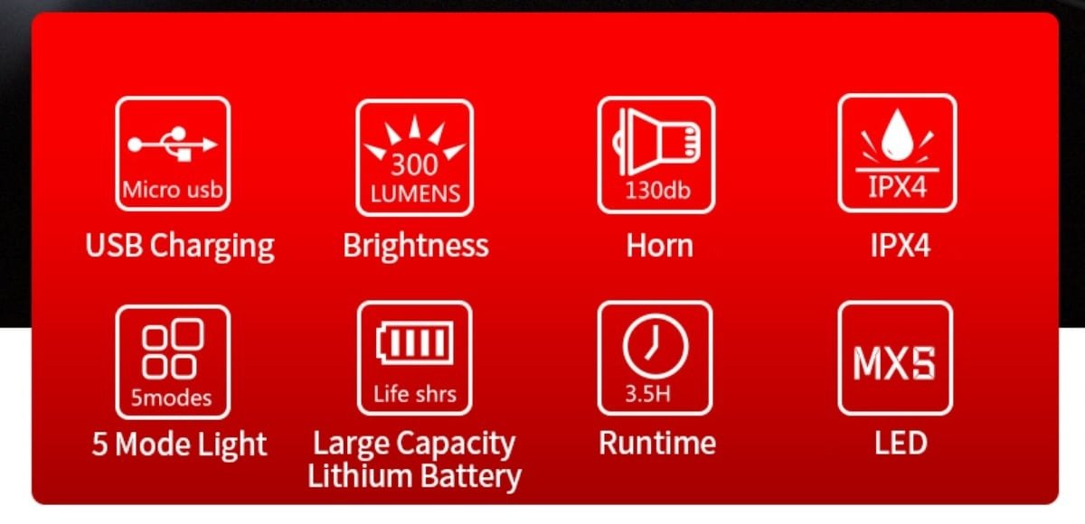 Modes   5 modes(single strong light-fog light-weak light plus fog light-high light plus fog light-strobe-off)