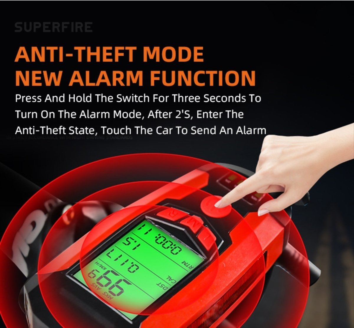 Anti-theft alarm mode   press and hold the central button switch for 3 seconds