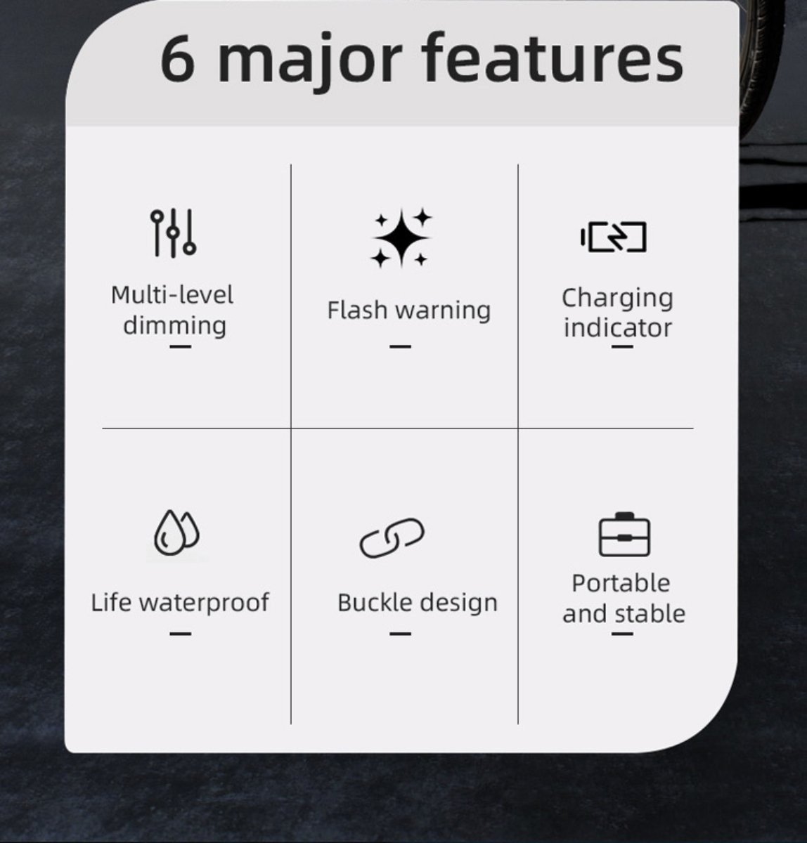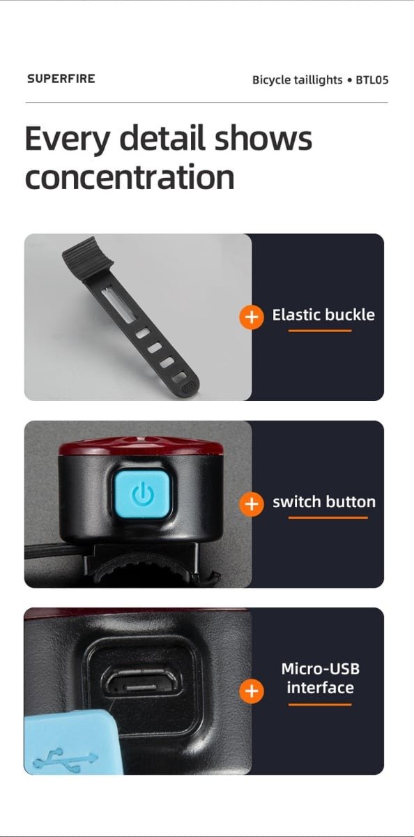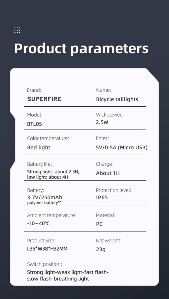 5 mode(High, Low, Strobe,Slow Flash,Breathing Light)