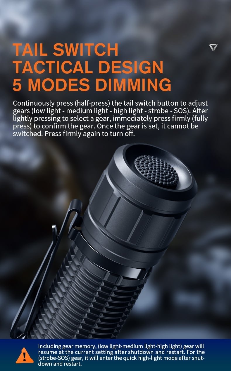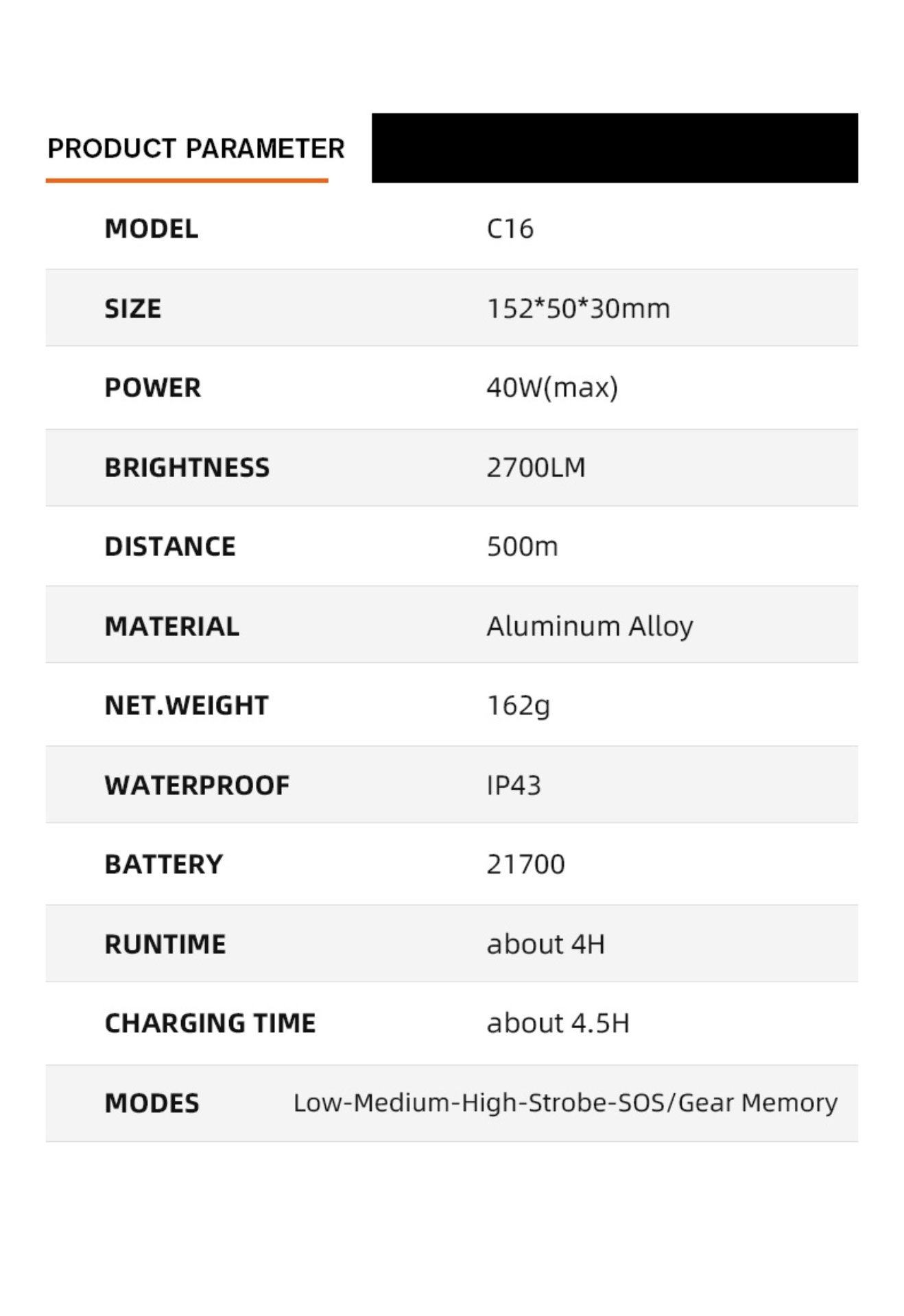 Modes: 5modes(Low>Middle>High>Strobe>SOS)