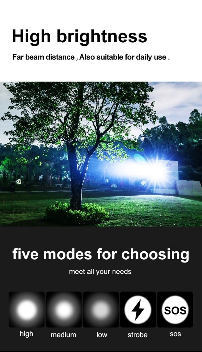Modes 5modes (Low>Medium>High>Strobe>SOS)