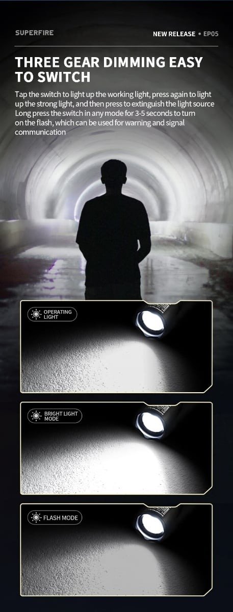 3 modes(Working light-strong light-Strobe)
