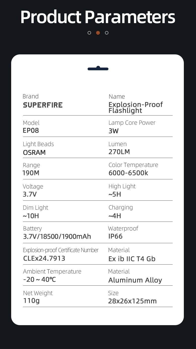 Runtime High mode ~5 hours, Work mode ~10 hours