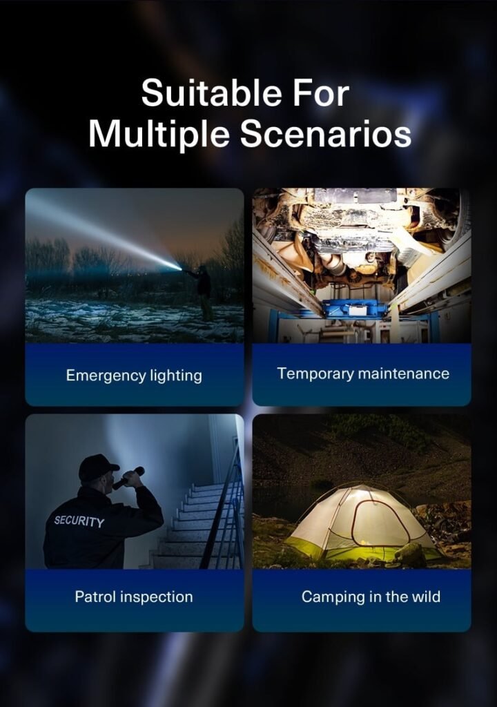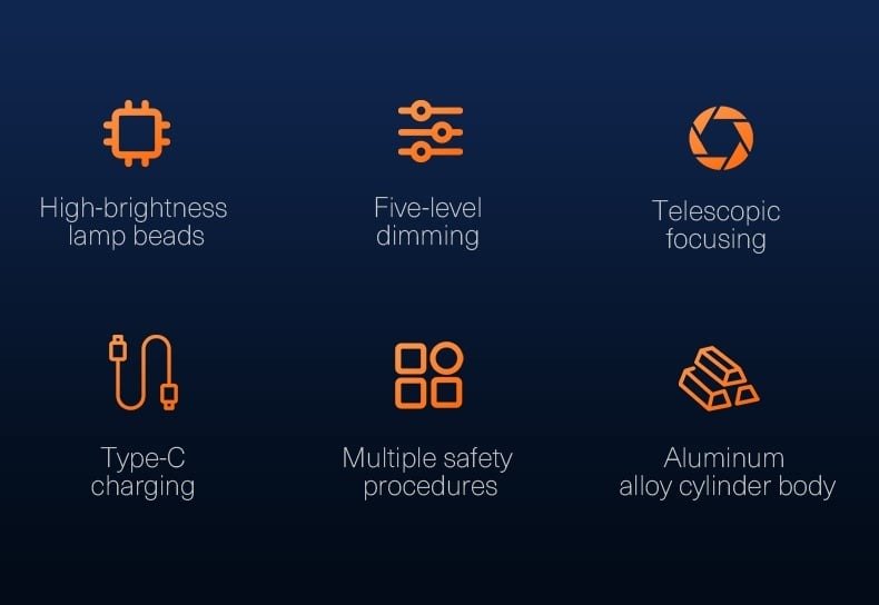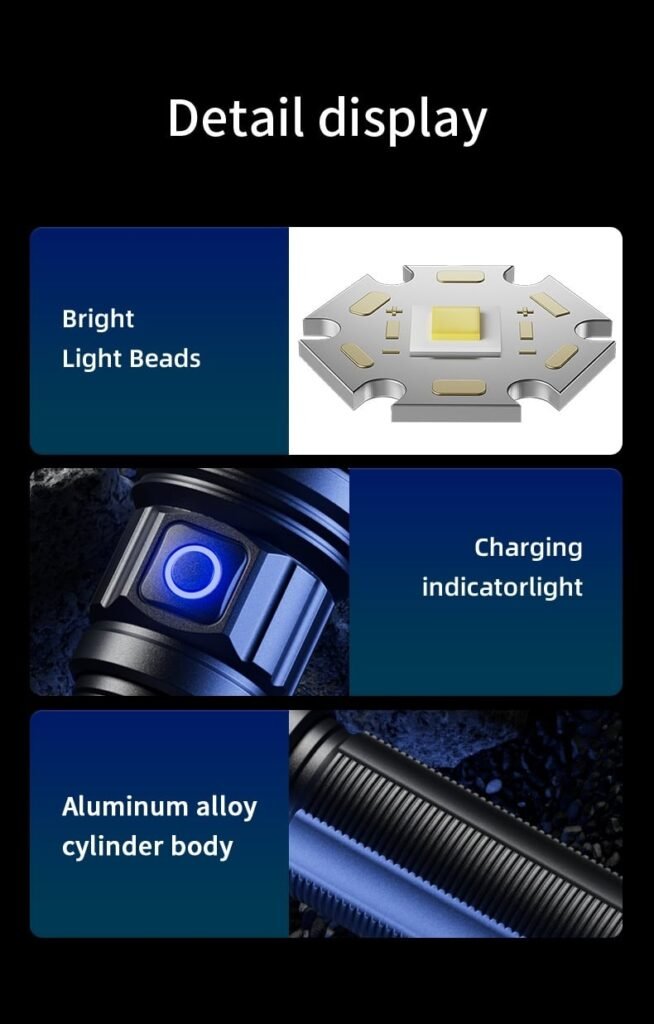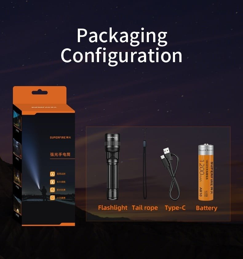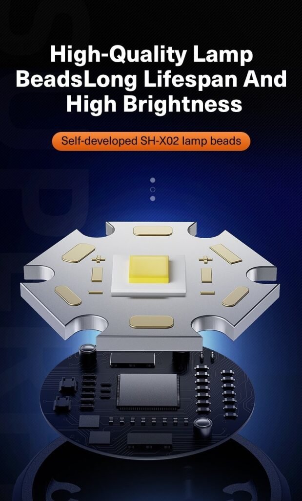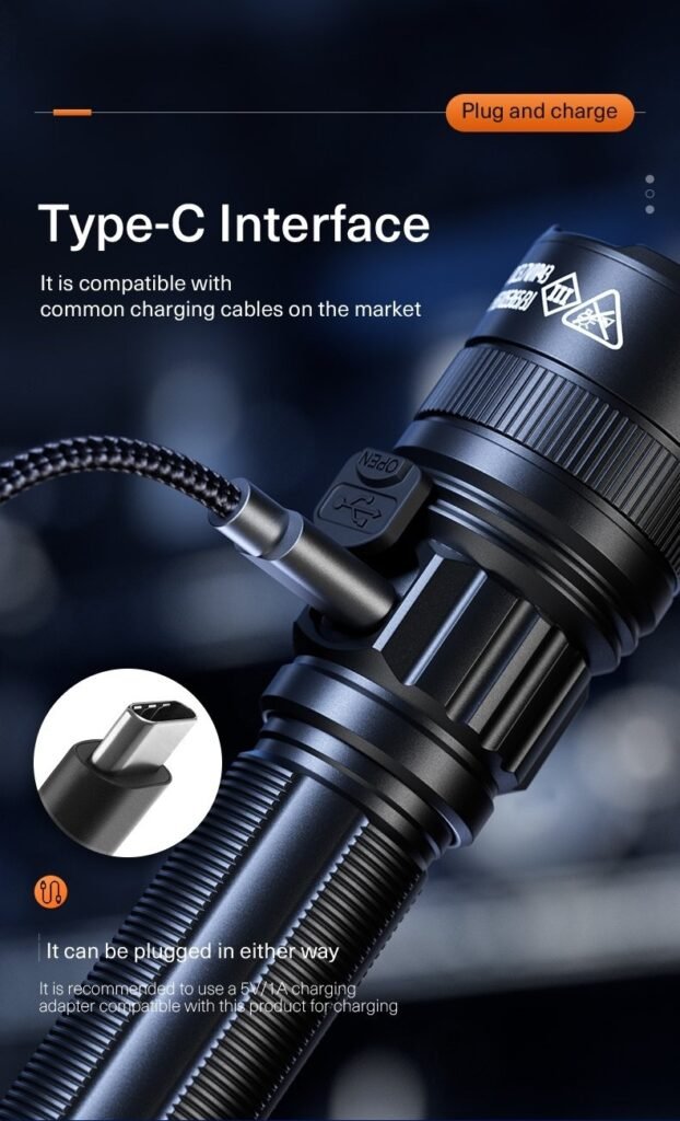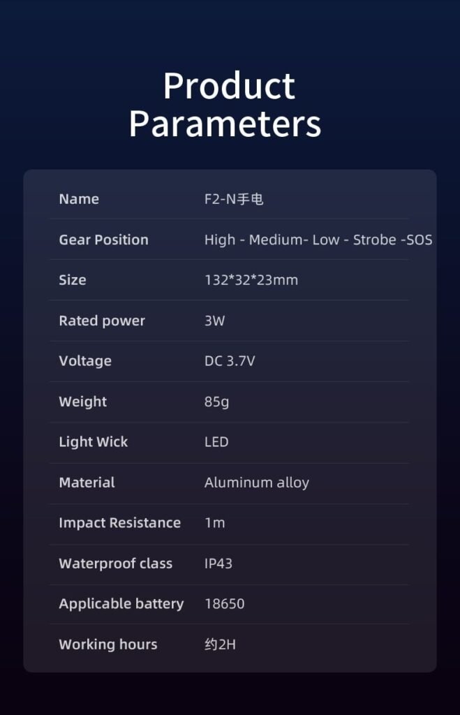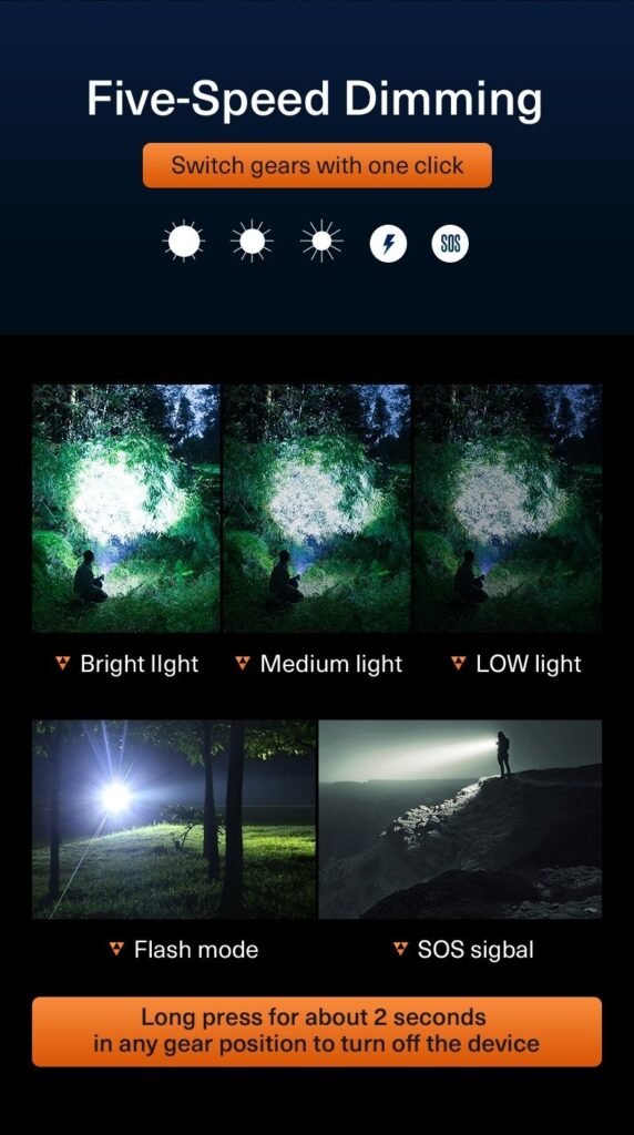 Lighting Modes High – Medium – Low – Strobe – SOS