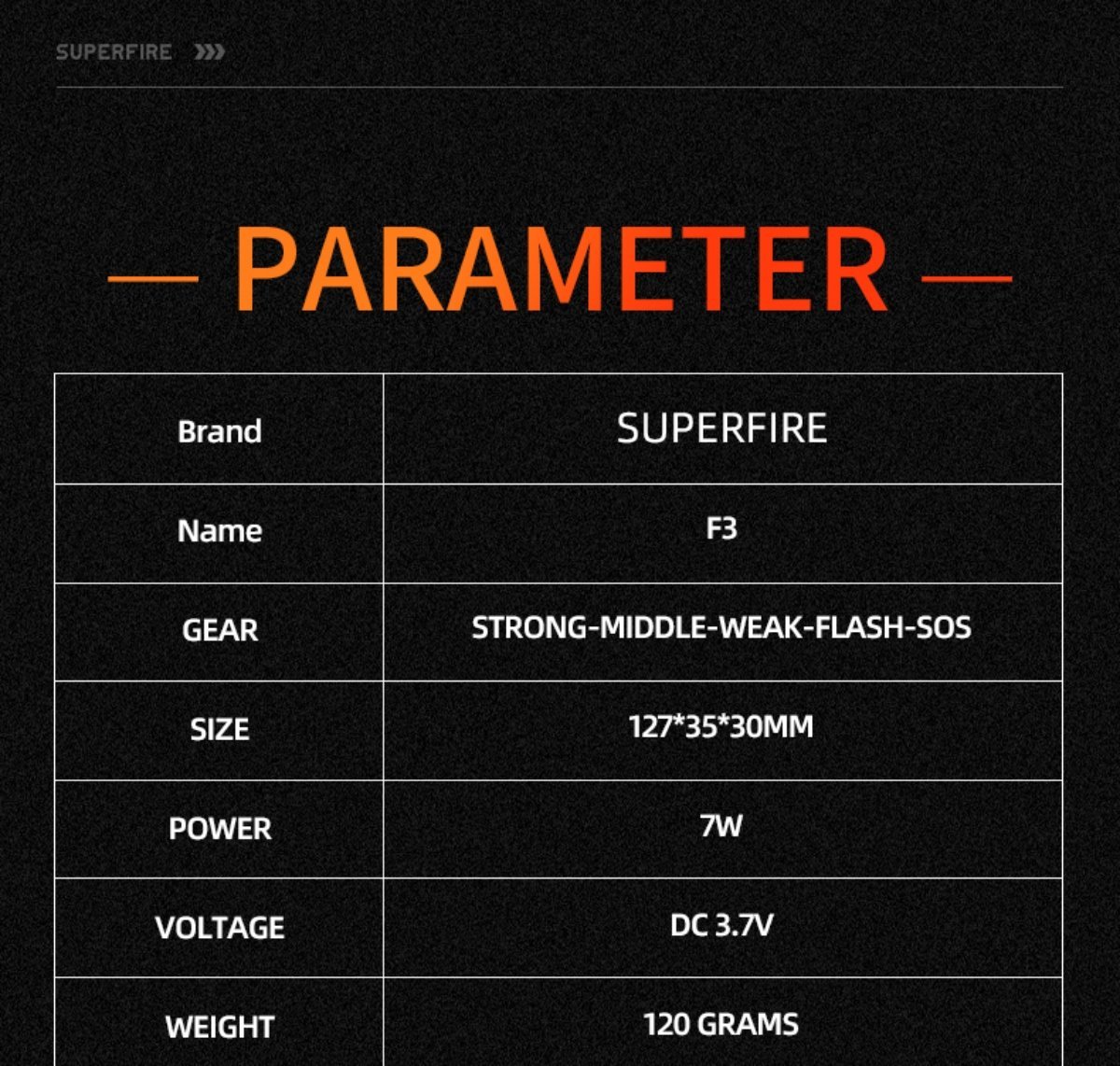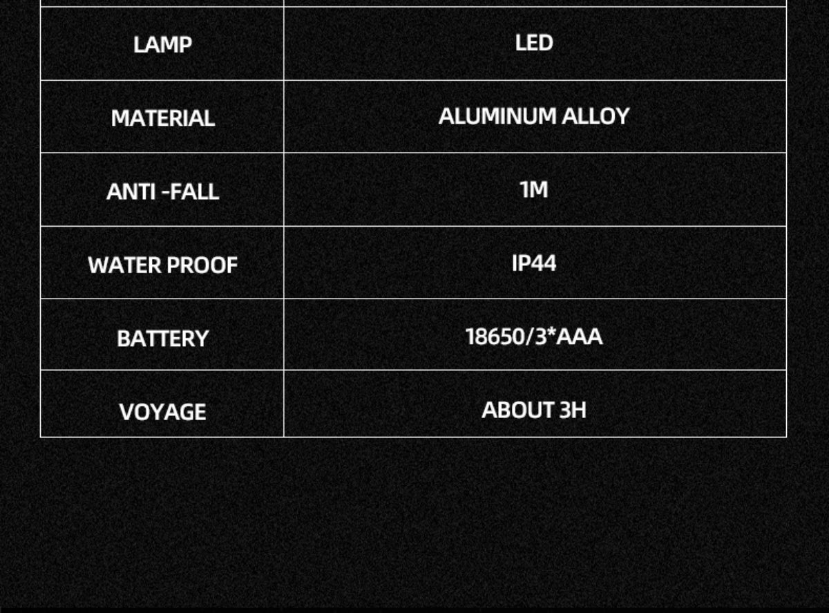 Modes 5modes(Strong Light-Medium Light-Low Light-Strobe-SOS)