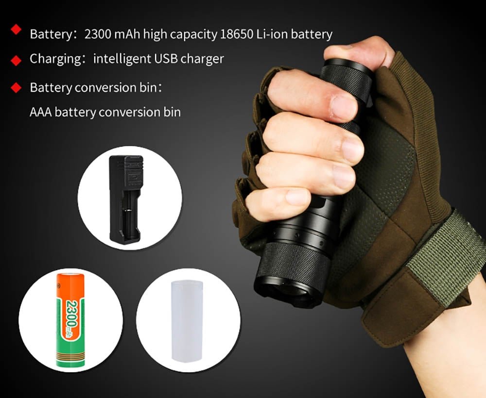 Power source 1*18650 or 3*AAA rechargeable Li-ion battery