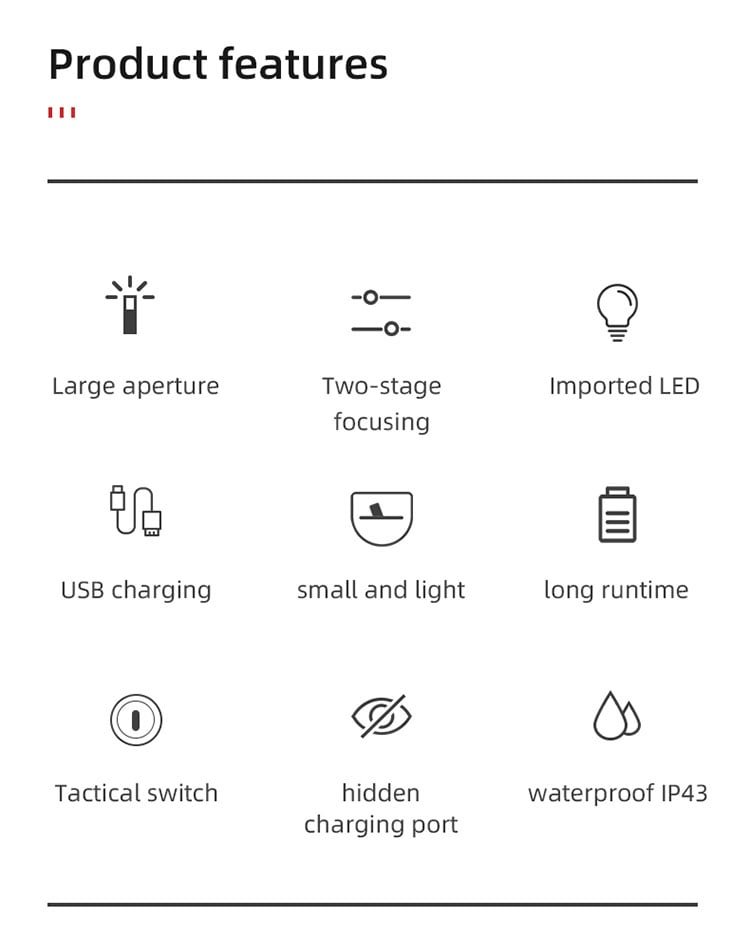 Modes 5 modes (High>Middle>Low>Strobe>SOS)