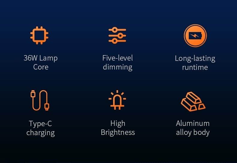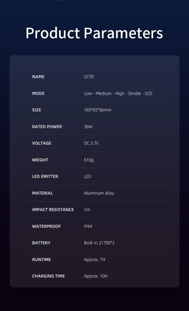 Mode Weak, Medium, Strong, Strobe, SOS