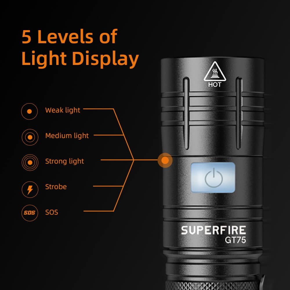 Modes 5mode(Low Light-Medium Light-Strong Light-Strobe-SOS)