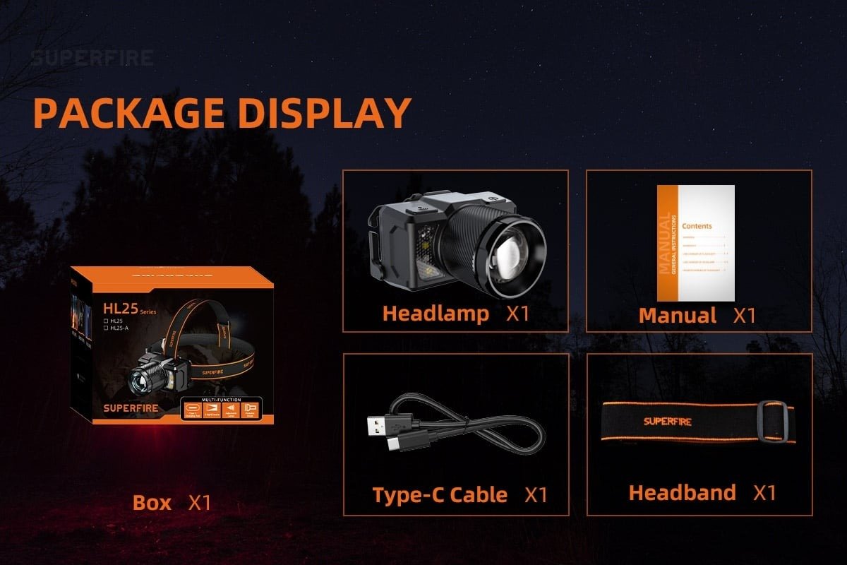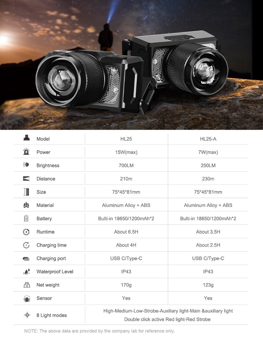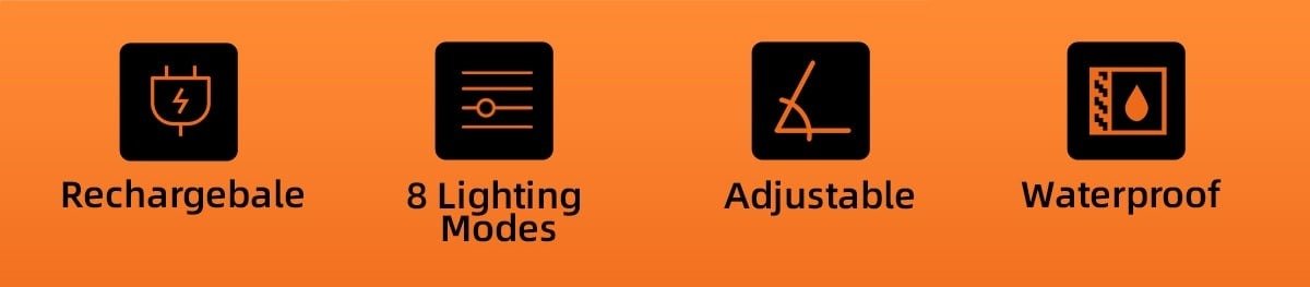 Modes 8modes(Low Light-Medium Light-Strong Light-Strobe-Auxiliary Light-Main Auxiliary Light/Red Light-Red Flash),Press and hold any gear for 3S to turn off the light source