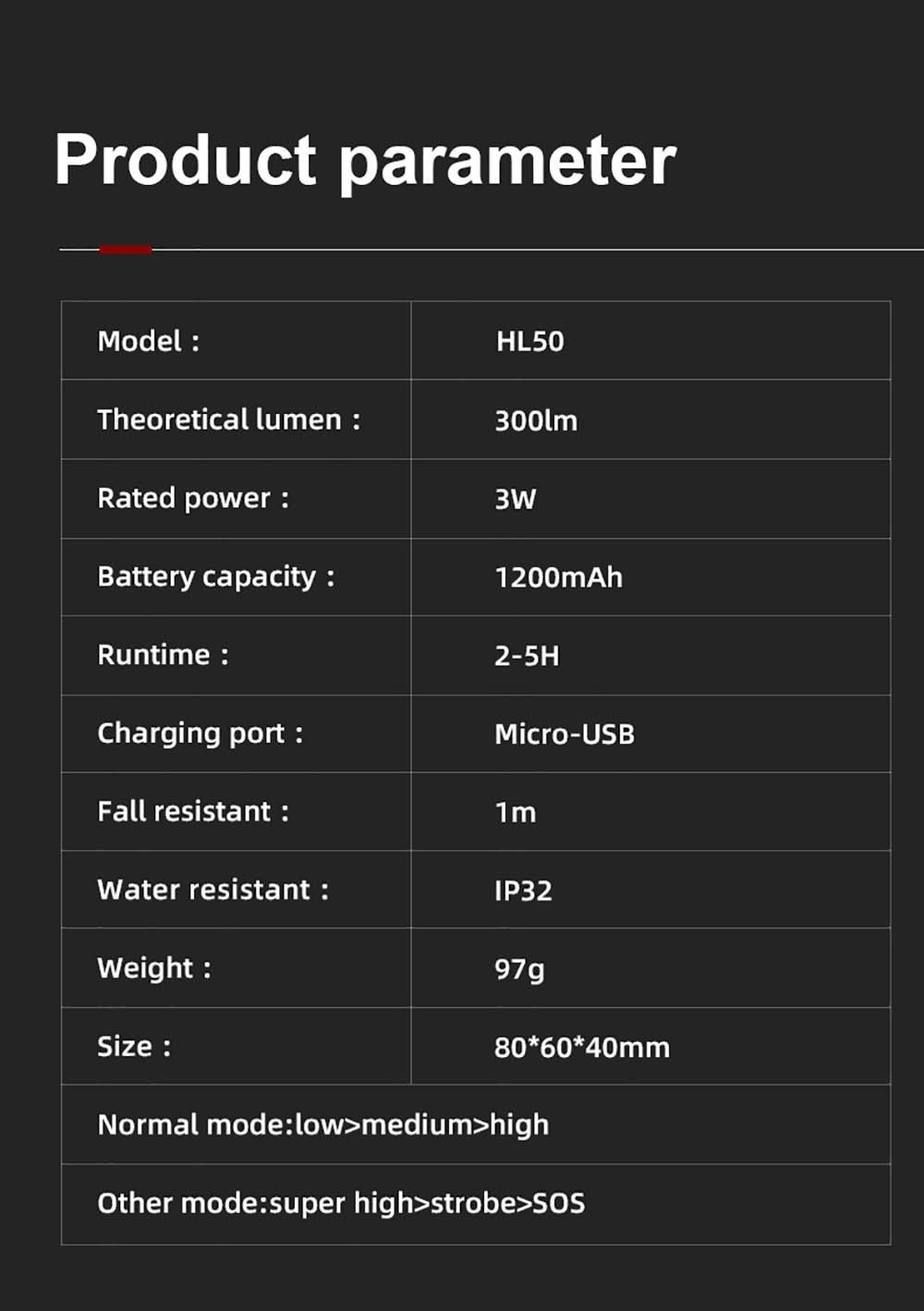 Lighting mode High>Low>Strobe,keep pressing for 2s enter SOS