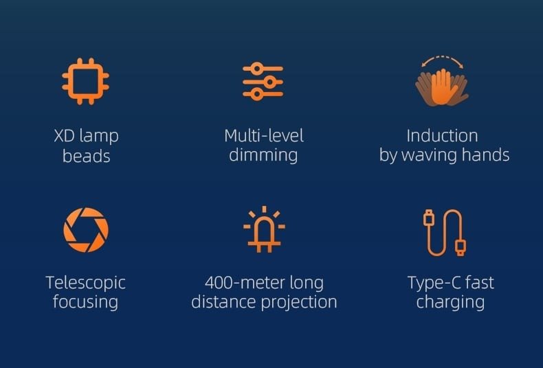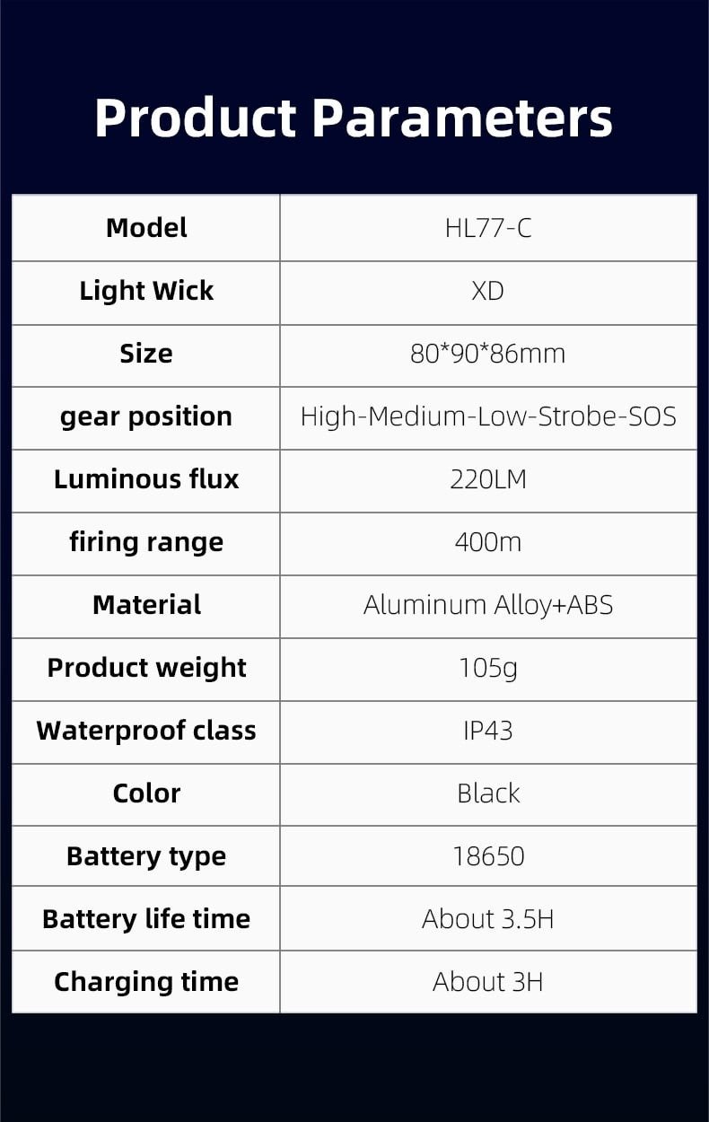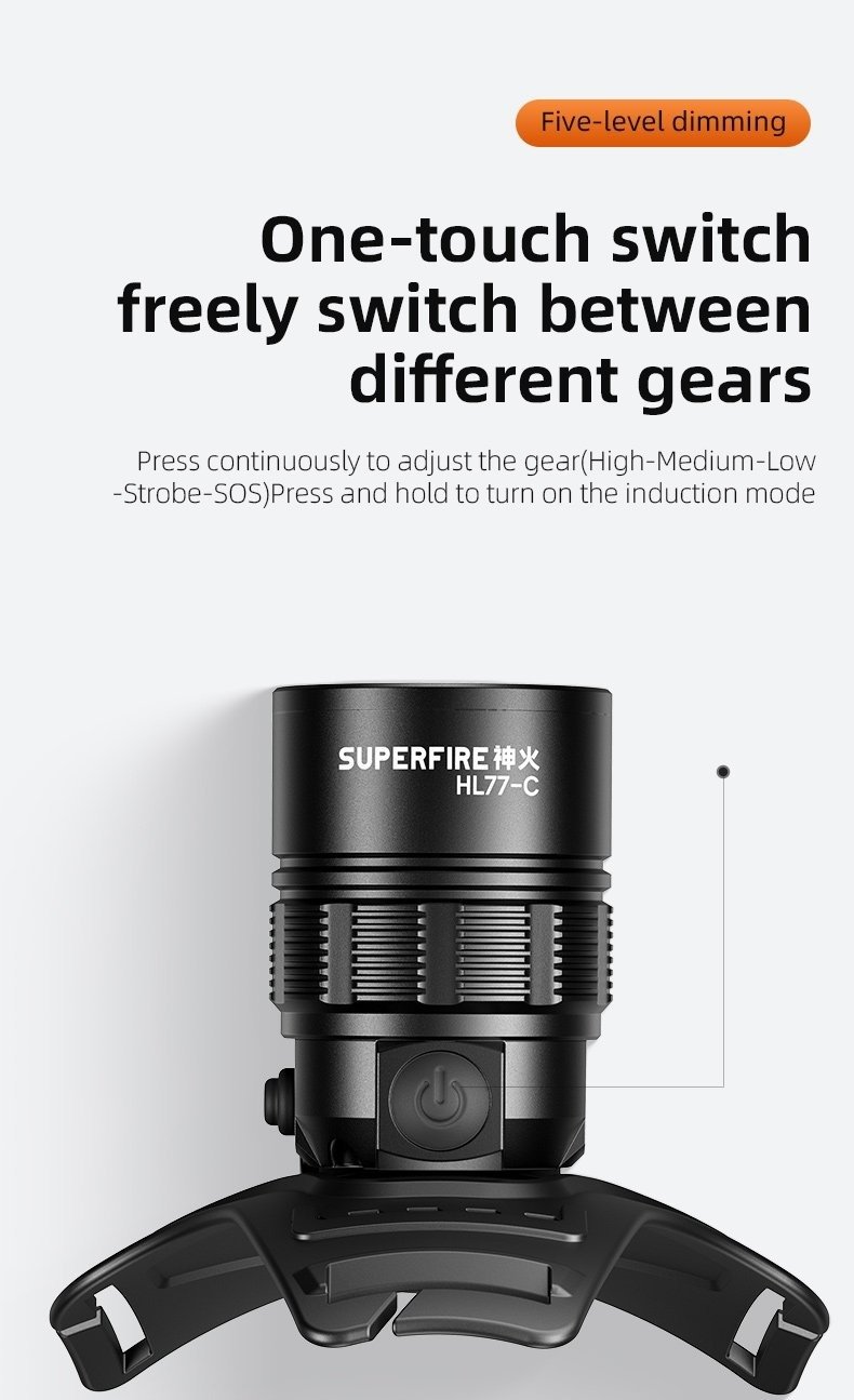 Modes 5 mode ( Strong → Medium → Weak → Strobe → SOS )