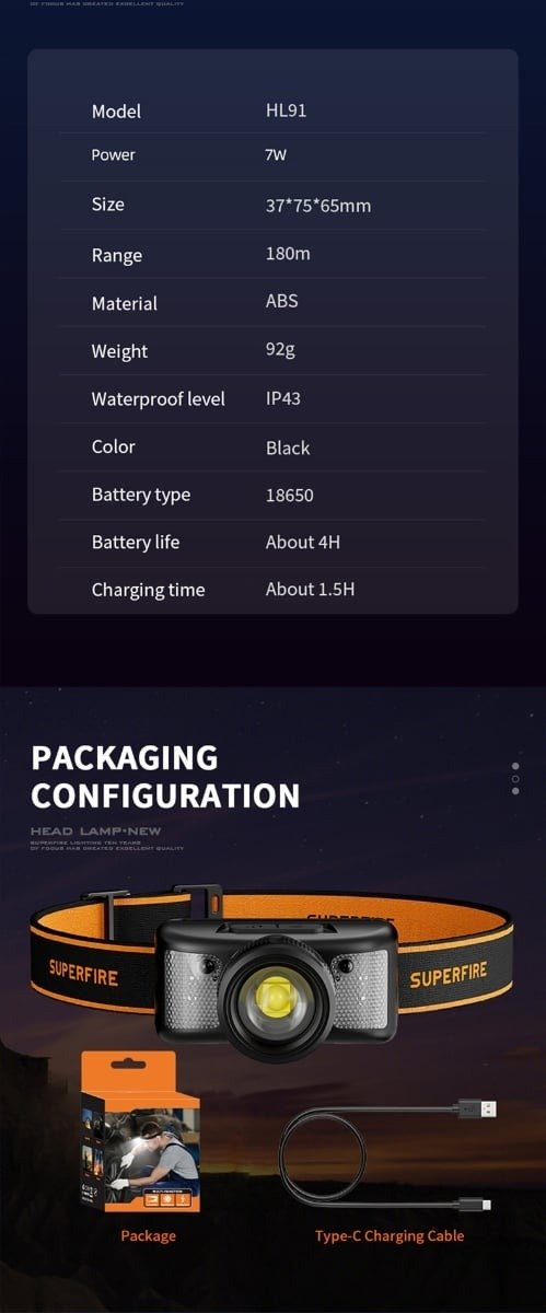 Modes 7 modes(Strong-Medium-Low-Strobe-SOS/Red-Red strobe)