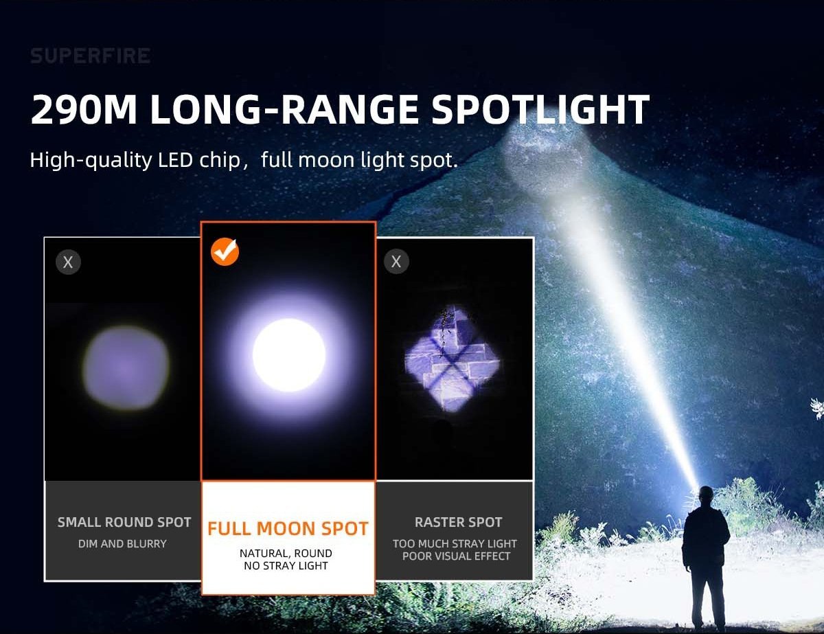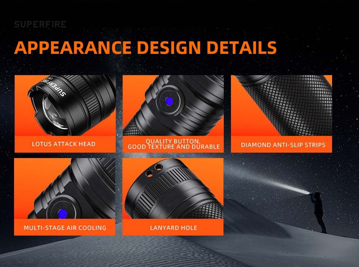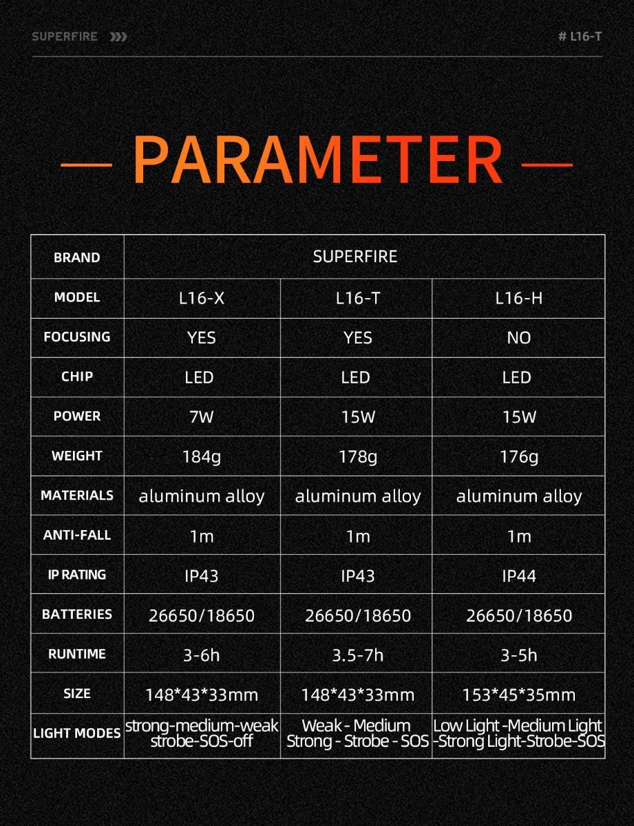 light mode   Weak – Medium – Strong – Strobe – SOS