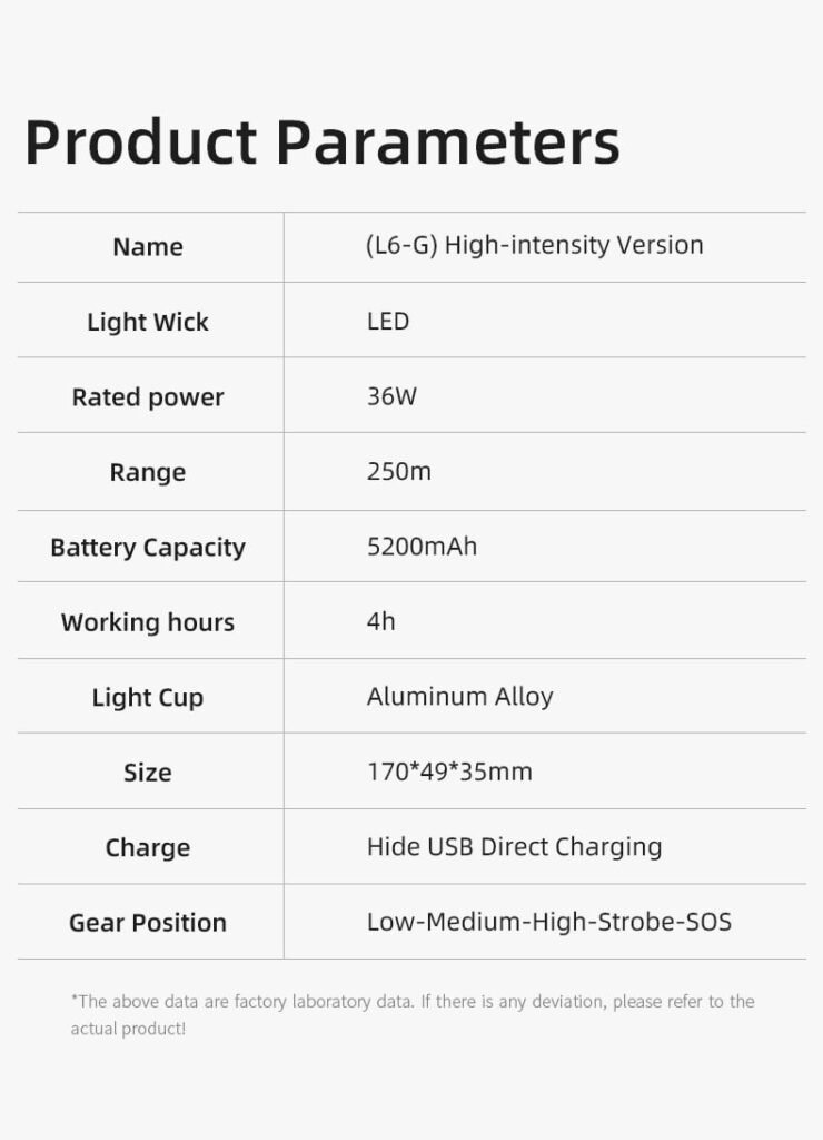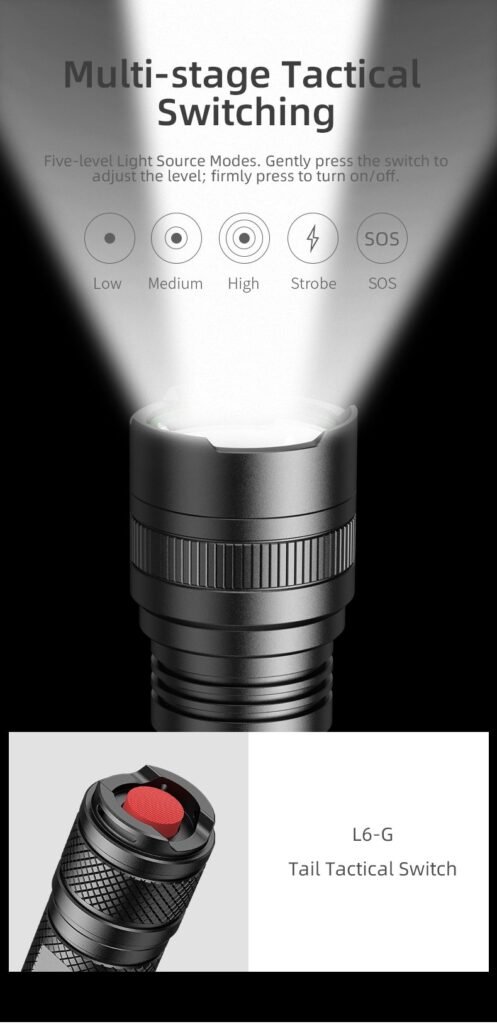Modes 5 modes (Low>Middle>High>Strobe>SOS)