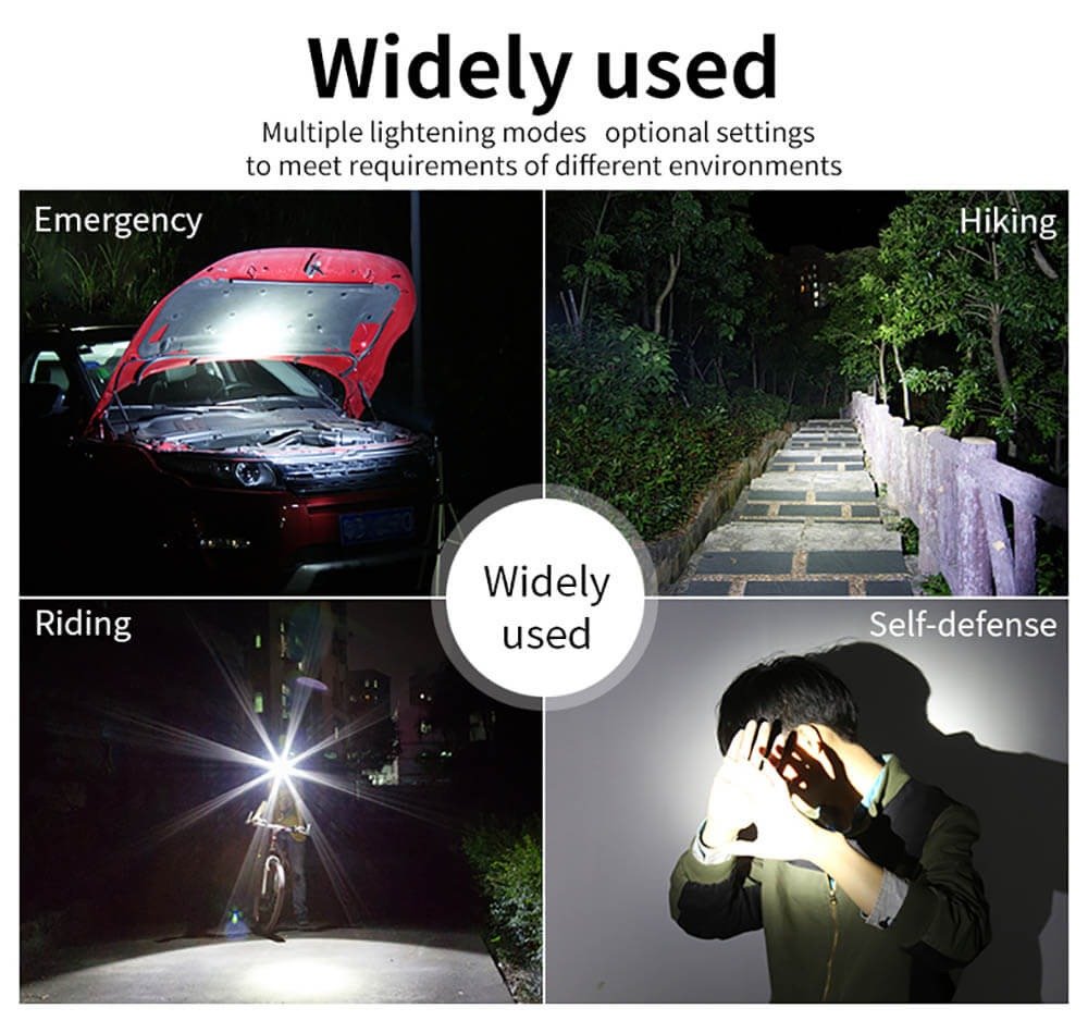 Lighting mode 5modes (High>Middle>Low>Strobe>SOS)