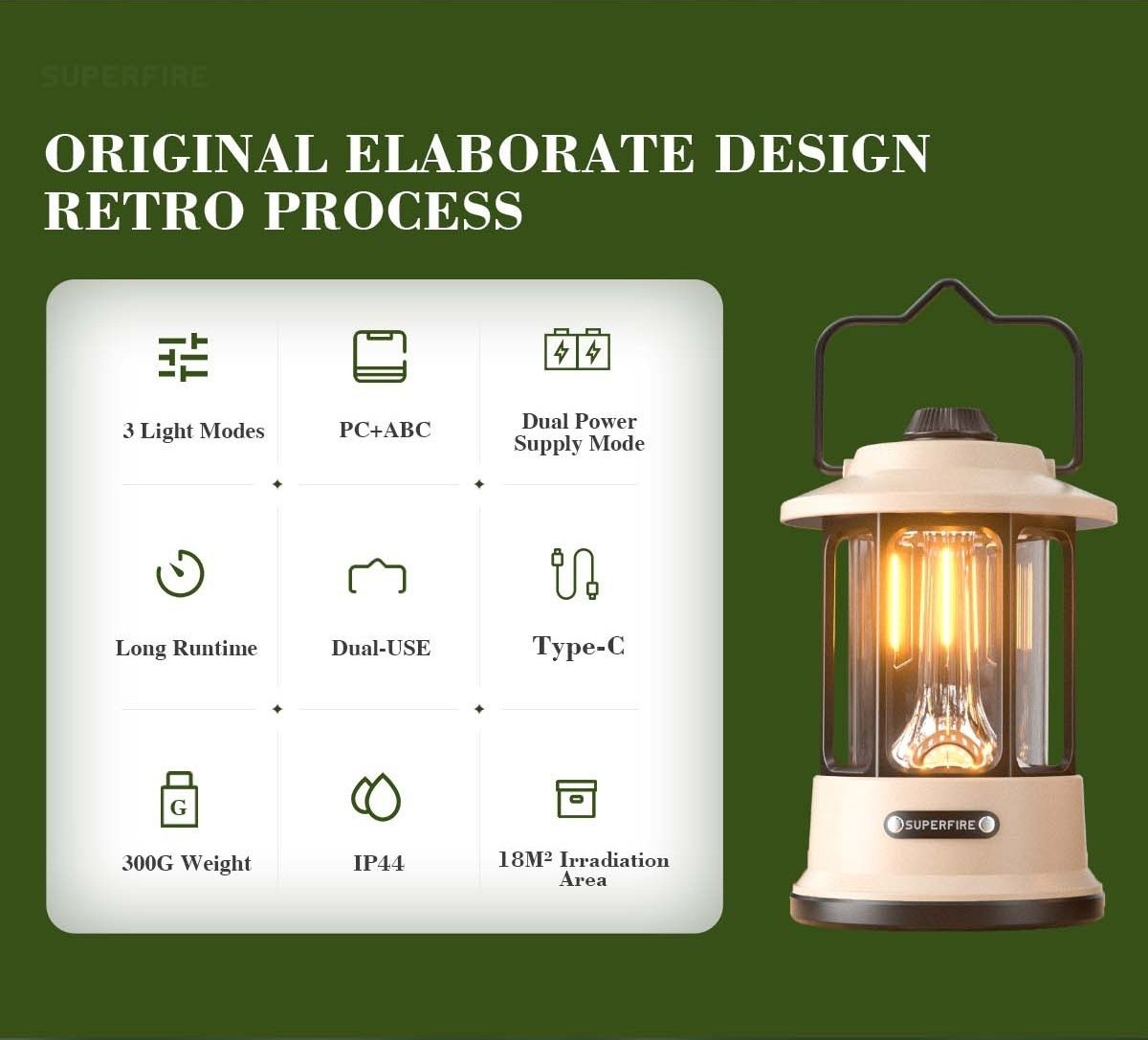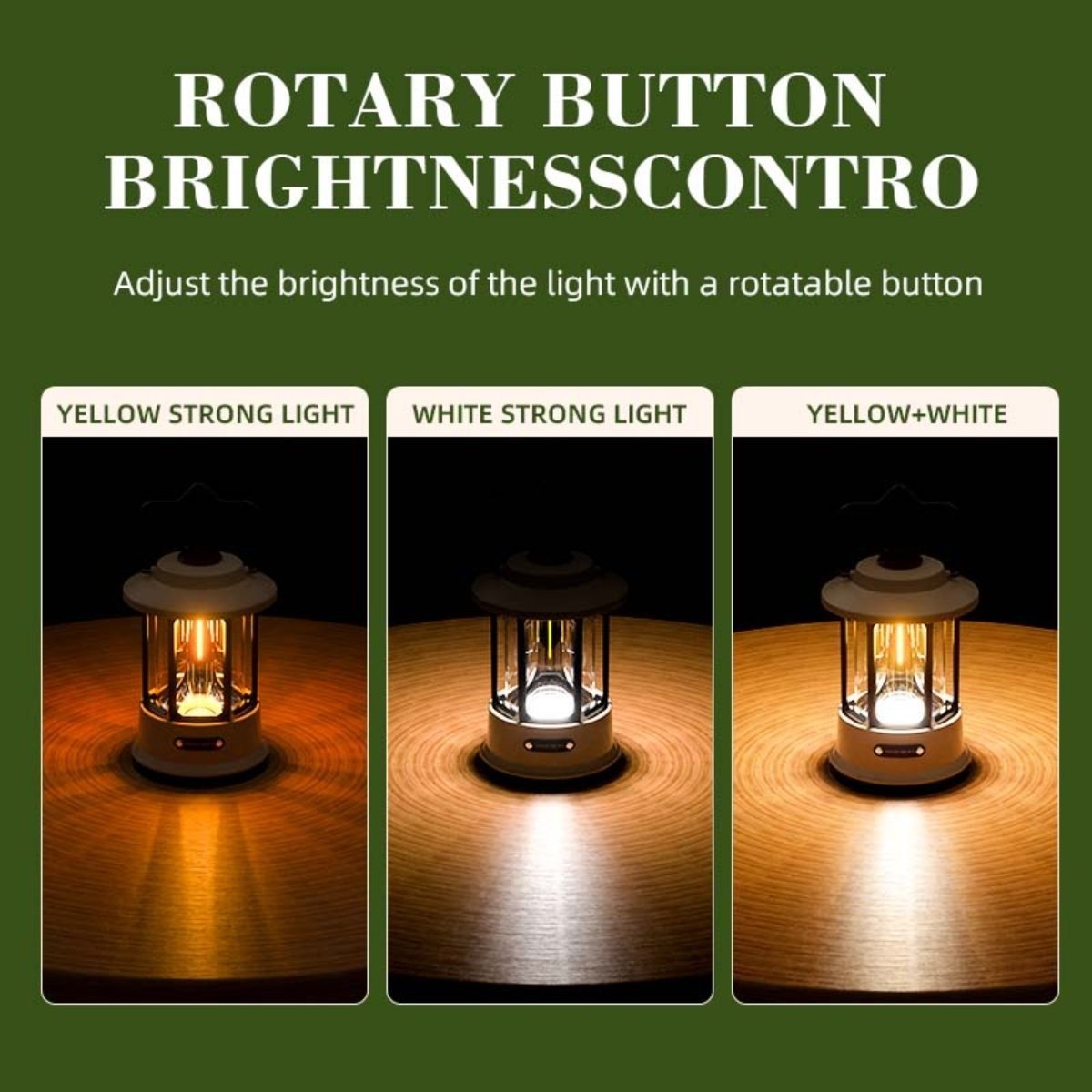 Modes   Yellow light (low light to high light)-white light (low light to high light)-yellow+white light order to select light color and brightness