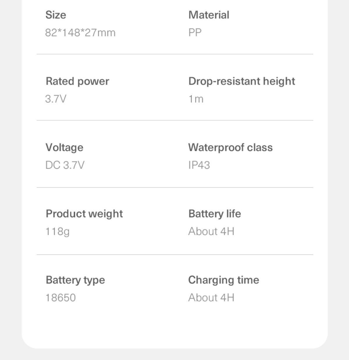 18650 / 2*2000mAh
