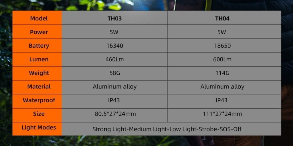 Mode Strong light-Medium light-Low light-Strobe-SOS