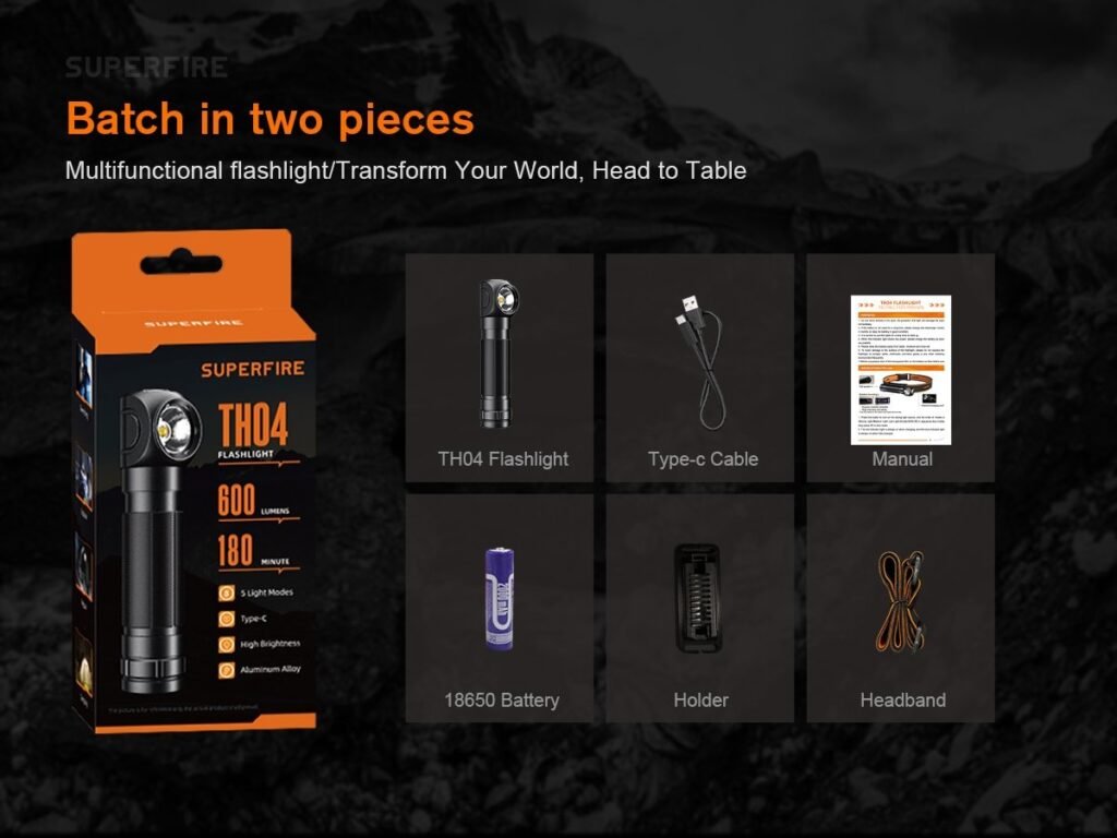 Mode TH04(High – Medium – Low – Strobe – SOS) TH04-S(High – Medium – Low – Strobe – SOS (Double-click for Turbo))