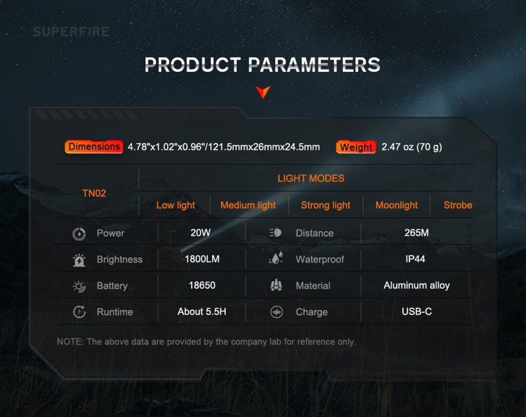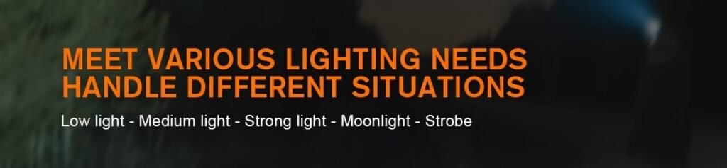 Lighting mode Low Light-Medium Light- Strong Light-Moonlight-Strobe-Off