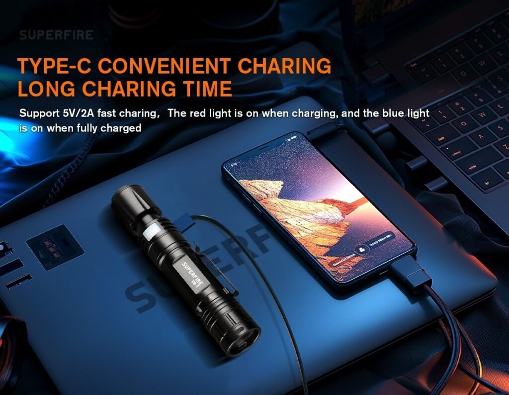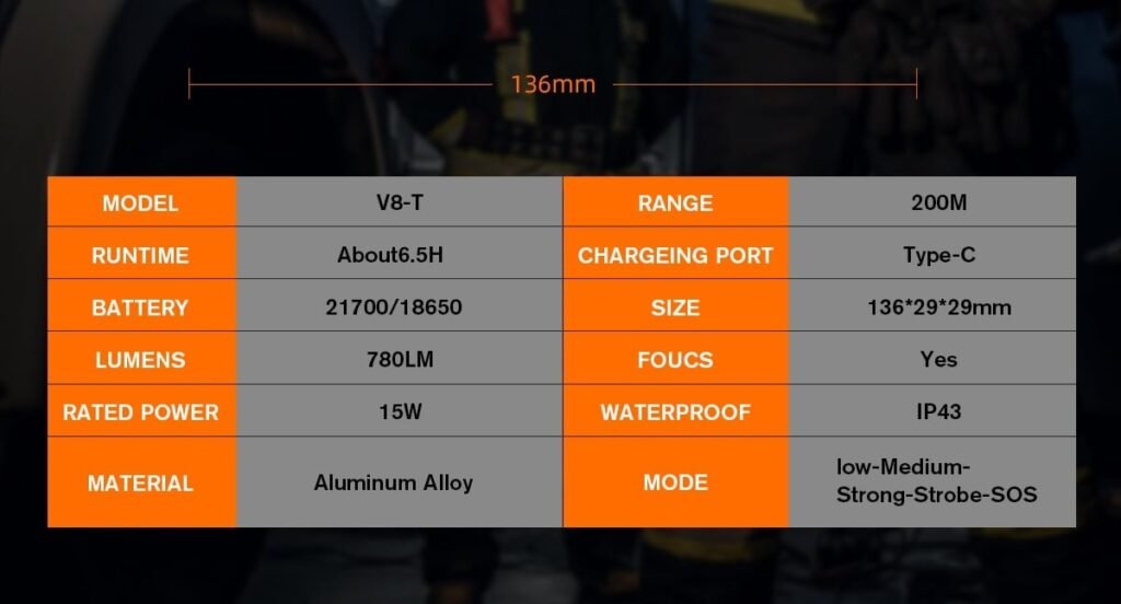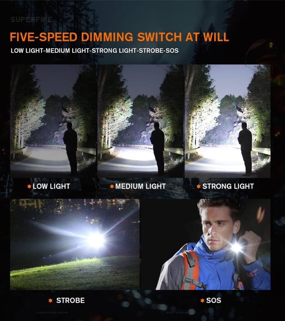 Mode Low light-Medium light-Strong light-Strobe-SOS