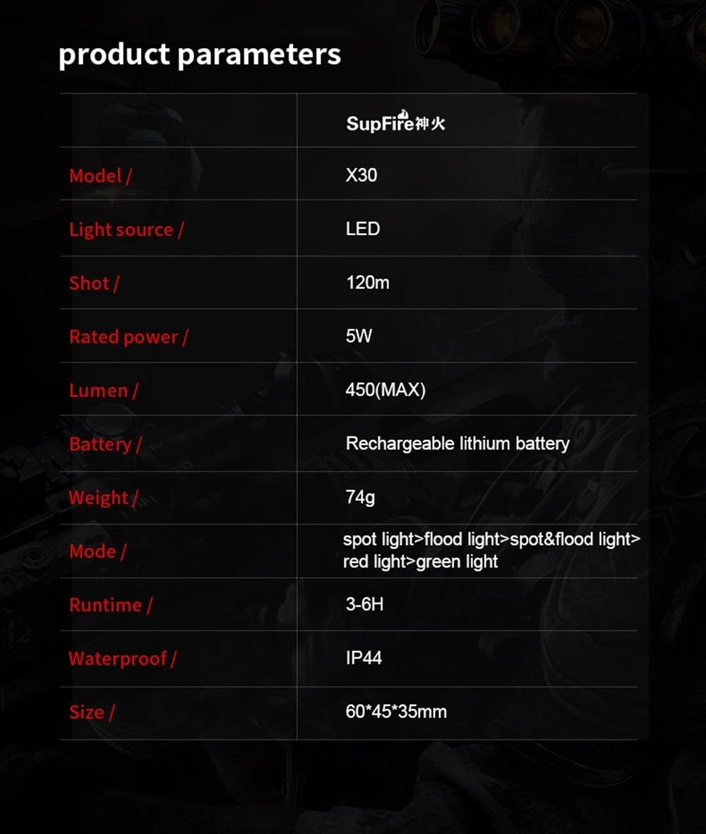 Modes 5modes(Main light>Auxiliary light>Main&Auxiliary light>red light>red strobe)