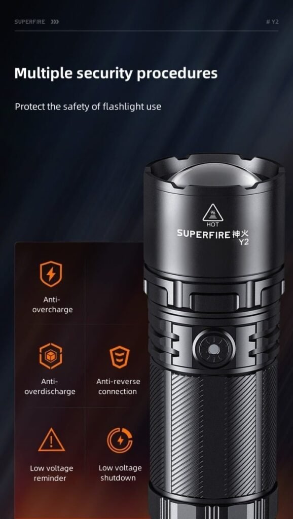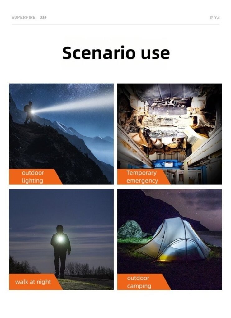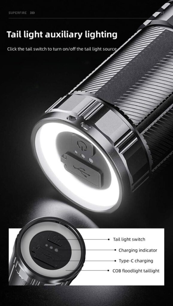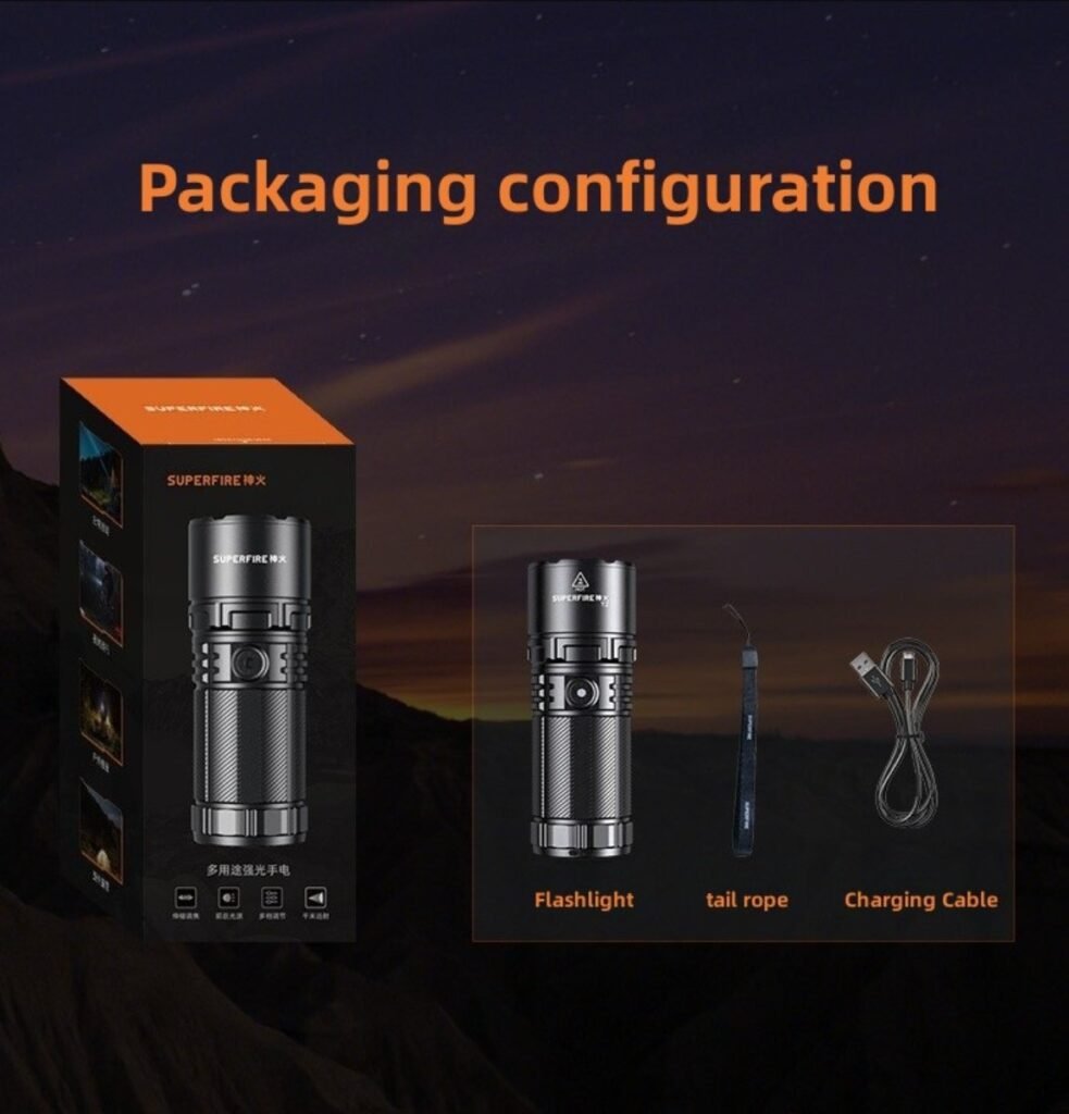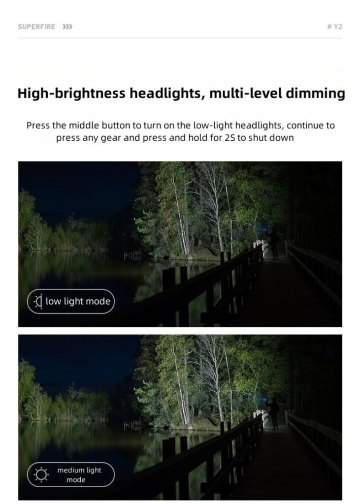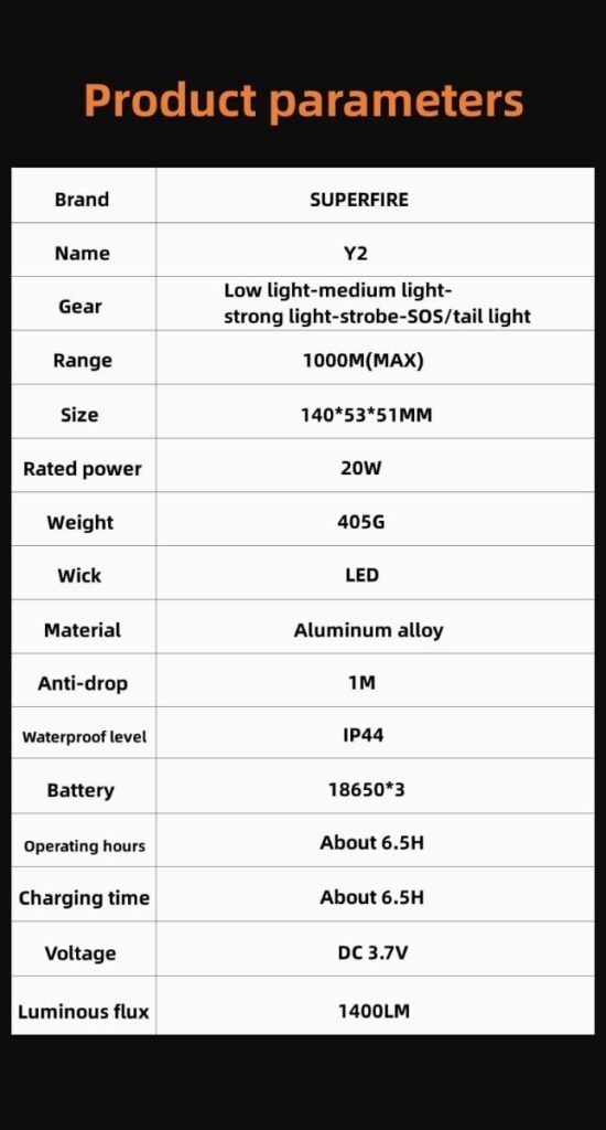 Mode Low light-medium light-strong light-strobe-SOS-off